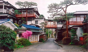 警視庁の保険療養所として創建と伝え,東下りの傾斜地に建つ。西側道路に面した2階に入母屋屋根の玄関を設け,寄棟造,桟瓦葺の木造3階建とする。3階に8畳間を中心とする客室を配す。南面縁外の擬宝珠高欄が目をひく。湯治場の風情を残す近代和風建築。