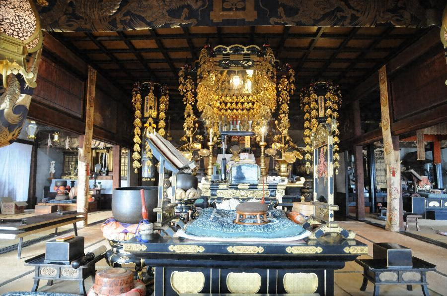 境内に南面して建ち、桁行六間梁間七間、正面一間向拝付、左に七面堂、右に玄関が接続する。平面は正面を広縁、奥を内陣と両脇陣に分け、日蓮宗本堂の特徴を示す。来迎柱のみ円柱として禅宗様須弥壇を置き、上方を極彩色で飾る。内陣の装飾密度を高めた本堂。
