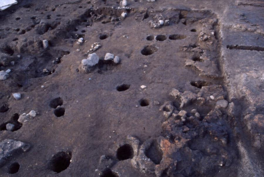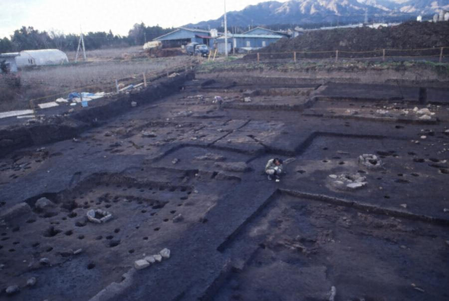 茅野遺跡 Eトレンチ水場より検出した石皿