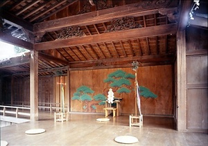 春日神社能舞台は,正統的な格式に加え,床下に音響施設の大甕を具備した構成になり,西日本でも屈指の近世能舞台として,高い価値がある。