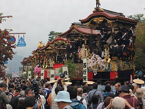 翌日は本祭で,各町内から出た13基の曳山がいったん神社に集結し,籤改めと称し,巡行の順番を確認する儀式が行われたのち,次々と市街地へと出発していく。巡行の途次では,所望といって,30か所ほどある所定の場所で,曳山ごとにからくり人形の操作や粽撒きなどを行い,これをその都度繰り返していく。こうして,夕方には終着点に至ると,曳き別れと称し,各町内へと戻っていく。(※解説は指定当時のものをもとにしています)